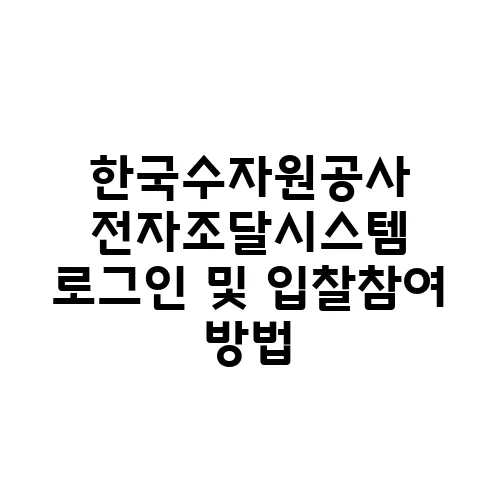 한국수자원공사의 전자조달시스템은 공공기관의 입찰 과정에서 중요한 역할을 합니다. 이 시스템을 통해 많은 기업들이 공정하고 투명한 방식으로 입찰에 참여할 수 있습니다. 오늘은 한국수자원공사의 전자조달시스템에 로그인하는 방법과 입찰에 참여하는 구체적인 과정을 알아보겠습니다. 아마 처음 접하시는 분들께는 다소 생소할 수 있지만, 단계별로 설명드리니 걱정 마세요. 함께 알아보도록 해요!