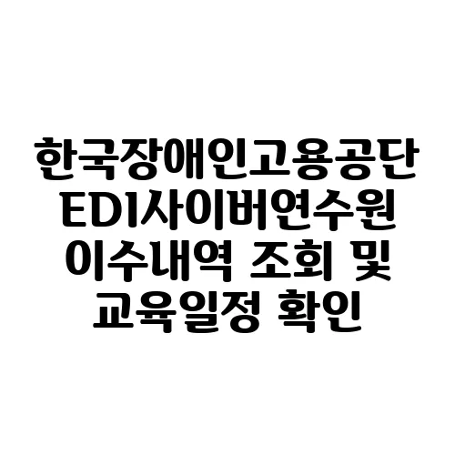 안녕하세요! 오늘은 한국장애인고용공단의 EDI사이버연수원에 대해 탐구해보려 합니다. 이 연수원은 장애인 고용 교육을 제공하는 곳으로서, 이수내역 조회 및 교육일정 확인의 중요성을 이해하고 필요한 정보를 쉽게 찾아볼 수 있도록 도와드립니다. 특히, 장애인 고용 교육에 대한 관심이 높아지고 있는 상황에서 이 정보를 제공하는 것은 더욱 중요해지고 있습니다. 함께 이 내용을 살펴보면 좋겠습니다.