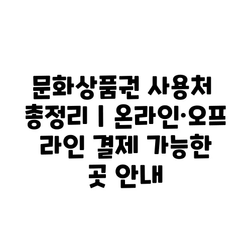 문화상품권은 다양한 사용처가 있어 매우 유용한 결제 수단으로 자리 잡고 있습니다. 많은 분들이 문화상품권 사용처에 대해 궁금해할 수 있는데요, 온라인과 오프라인에서 모두 사용이 가능하다는 점에서 특히 매력적입니다. 이 포스팅에서는 문화상품권 결제가 가능한 다양한 장소에 대해 알아보겠습니다. 또한, 문화를 즐길 수 있는 다양한 경험을 넓힐 수 있도록 도와드리겠습니다.