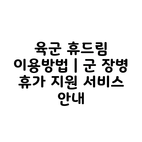 안녕하세요! 오늘은 육군 장병들을 위한 휴드림 서비스를 소개하겠습니다. 이 휴가 지원 서비스는 군복무 중인 여러분이 군인 휴가 신청을 보다 원활하게 할 수 있도록 돕기 위해 만들어졌습니다. 많은 군 장병들이 이 서비스를 이용하고 있지만, 여전히 사용하는 방법에 대해 잘 모르는 분들이 많습니다. 그렇다면 함께 이 서비스에 대해 자세히 탐구해 보도록 하겠습니다. 혹시 처음이라 어렵게 느껴지실 수도 있지만, 천천히 설명해 드리겠습니다.