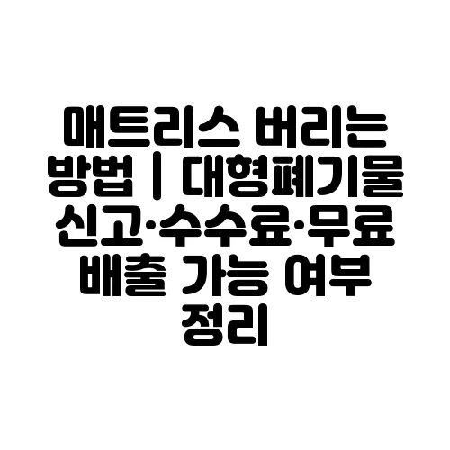 매트리스를 폐기하는 것은 생각보다 어려운 일일 수 있습니다. 특히, 매트리스는 부피가 크고, 일반 쓰레기와는 다른 처리 방법이 필요하기 때문에 많은 사람들이 어떻게 매트리스를 버릴 수 있을지 고민합니다. 본 글에서는 매트리스 폐기 방법에 대한 모든 정보를 정리하여, 대형폐기물 신고 절차와 수수료, 무료 배출 가능 여부를 포함한 다양한 매트리스 배출 방법을 안내해 드리려고 합니다. 이 글을 통해 매트리스를 효율적으로 폐기하는 방법을 알게 되실 것입니다.