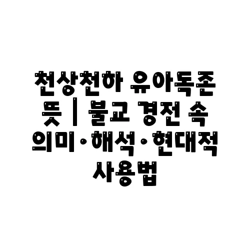 천상천하 유아독존(天上天下 唯我獨尊)은 '하늘과 땅에 오직 나만이 독존한다'는 의미로, 불교에서 부처님의 위대함을 나타내는 구절입니다. 이는 부처가 최상의 존재임을 강조하며, 모든 중생이 부처님의 가르침을 통해 깨달음을 이룰 수 있다는 메시지를 지니고 있습니다.