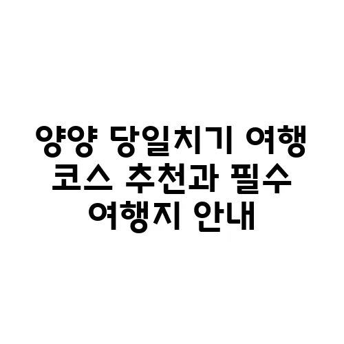 양양은 아름다운 자연 경관과 매력적인 관광 명소로 유명하여, 당일치기로 방문하기에 이상적인 장소입니다. 이 글에서는 양양 당일치기 여행 코스 추천과 필수 여행지에 대해 알아보겠습니다. 여행 코스를 계획하고 있는 분들에게 유용한 정보들이 가득하니, 함께 살펴보시길 바랍니다.