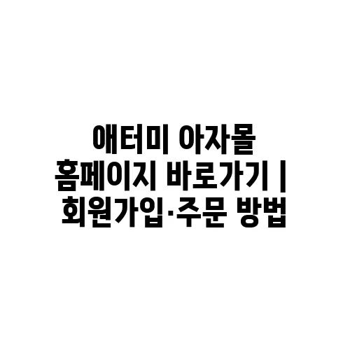 애터미 아자몰은 많은 분들이 편리하게 쇼핑할 수 있는 온라인 플랫폼으로, 회원가입과 주문 방법을 파악하는 것이 매우 중요합니다. 애터미의 다양한 제품에 쉽게 접근할 수 있으며, 혜택을 최대한 활용하는 방법을 알아보면 좋습니다. 이 글에서는 애터미 아자몰을 통한 쇼핑 방법, 회원가입 절차, 그리고 주문 방법에 대해 자세히 설명드리겠습니다. 함께 살펴보면서 애터미를 더 잘 활용해 보시죠!