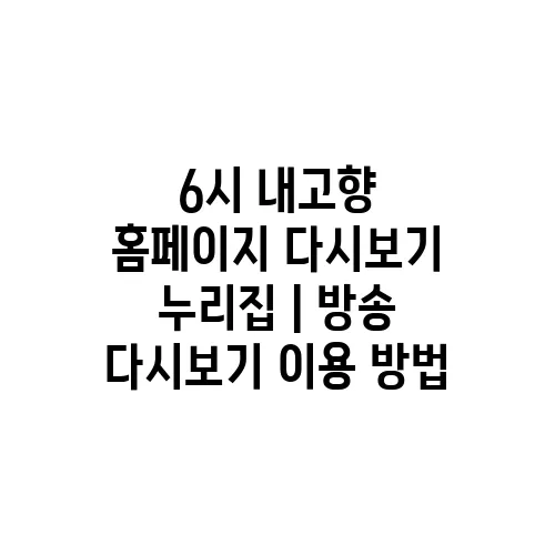 안녕하세요! 오늘은 많은 분들이 자주 찾는 프로그램인 6시 내고향을 주제로 이야기를 나눠보겠습니다. 특히, 이 프로그램의 다시보기 서비스와 관련된 정보를 소개할 텐데요. 방송을 놓쳤거나 다시 보고 싶을 때는 어떻게 해야 할까요? 바로 6시 내고향 홈페이지를 통해서 손쉽게 다시볼 수 있습니다. 이 글에서는 방송 다시보기 이용 방법과 다시보기 누리집의 유용성에 대해 자세히 알아보겠습니다. 그럼 함께 탐색해볼까요?