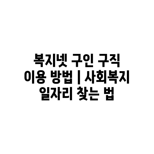복지넷에서는 구직 정보를 찾기 위해 먼저 홈페이지에 접속한 후, '구인구직' 메뉴를 클릭합니다. 이후 원하는 지역이나 직종을 선택하여 필터링 할 수 있으며, 검색 결과에서 상세 정보를 확인할 수 있습니다.