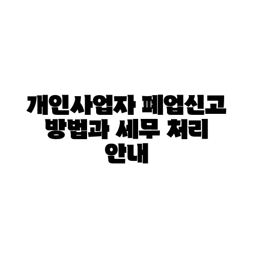 개인사업자는 시간이 지나면서 여러 이유로 손을 떼고 싶을 때가 있습니다. 폐업을 고려하게 되면 많은 질문이 떠오릅니다. 폐업신고는 어떻게 해야 할까요? 세무 처리는 어떻게 할까요? 이번 포스팅에서는 개인사업자 폐업신고 방법과 그에 따른 세무 처리에 대해 깊이 있게 알아보겠습니다. 폐업신고 과정과 관련 서류, 세금 정산까지 폭넓게 다루면서 많은 분들이 겪는 어려움을 함께 공유하고 해결책을 제시해 드릴까 합니다.