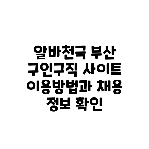 부산에서 알바를 찾고 계신가요? 알바천국 부산 구인구직 사이트는 다양한 직종과 조건의 알바 기회를 제공하여 많은 이들이 이용하고 있습니다. 이 글에서는 알바천국 부산을 통해 구인구직을 하는 방법과 채용 정보를 확인하는 방법에 대해 알아보겠습니다. 알바를 찾는 분들에게 유용한 팁과 실질적인 정보도 함께 제공하니, 끝까지 읽어보세요.